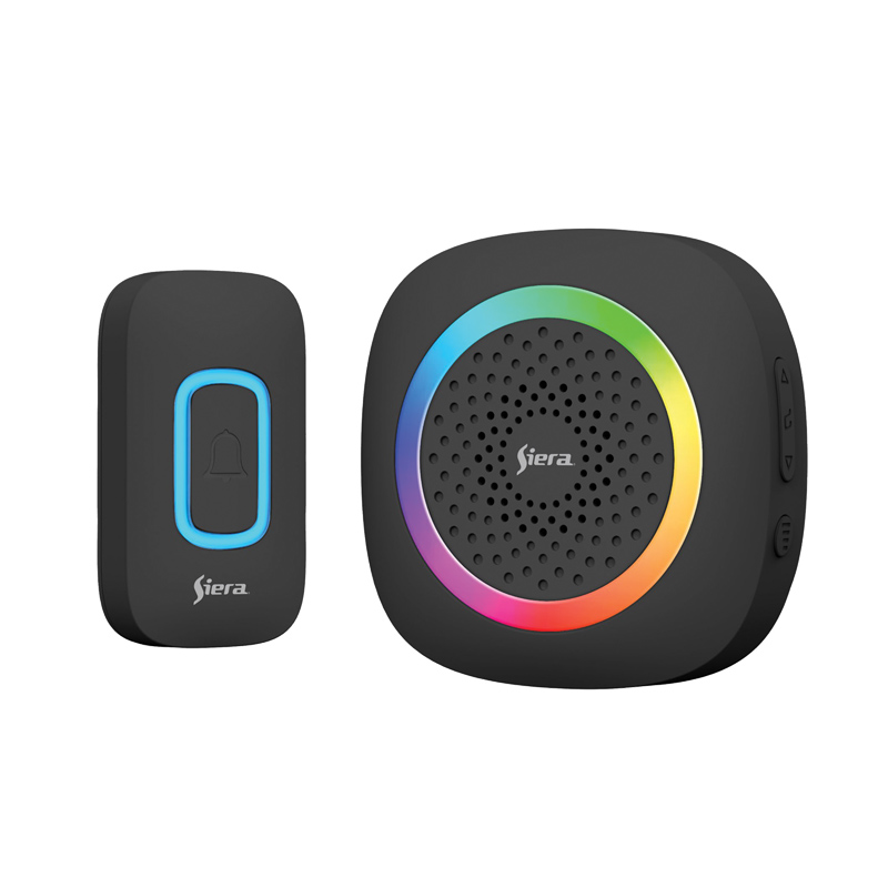 Wireless doorbell with colored light indicator and battery powered. Working frequency of 433MHz. Wireless distance of 300m outdoors. 60 melodies, 5 levels of volume adjustment. It’s an IP44 outdoor device, waterproof and dustproof.